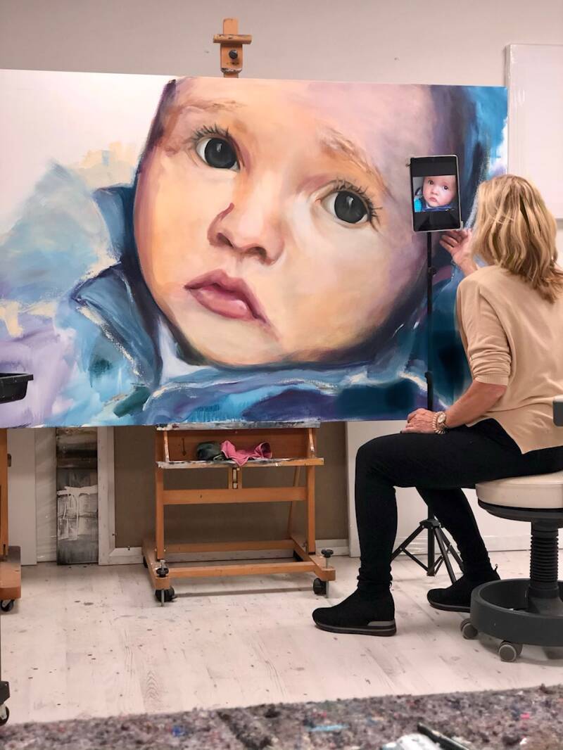 Bij portret opdrachten heb ik een eigen toegankelijke werkwijze bedacht, waarbij je iedere fase vanaf de schets kunt meekijken via WhatsApp. Ik heb dit "Art-venture” genoemd en ik hoop dat jij het ook als een avontuur zult zien. Het moet een mooi samenwerkingsproject worden, iets wat je jezelf gunt als een fotoreportage in verf, waarbij ik jouw gelaatstrekken zoek die jou bijzonder maken. Doordat je meekijkt heb je de mogelijkheid om je bevindingen en suggesties te uiten. Ik hoop hiermee de drempel weg te nemen, waardoor je je veilig voelt tijdens dit proces. Ik schilder tot aan de vernis fase, want eerst kom je live kijken en in alle rust bespreken we samen het portret. Mijn iPhone foto benadert namelijk nooit de beleving van de live-versie. Qua afwerking kan ik dan nog alle kanten uit…want jij beslist!